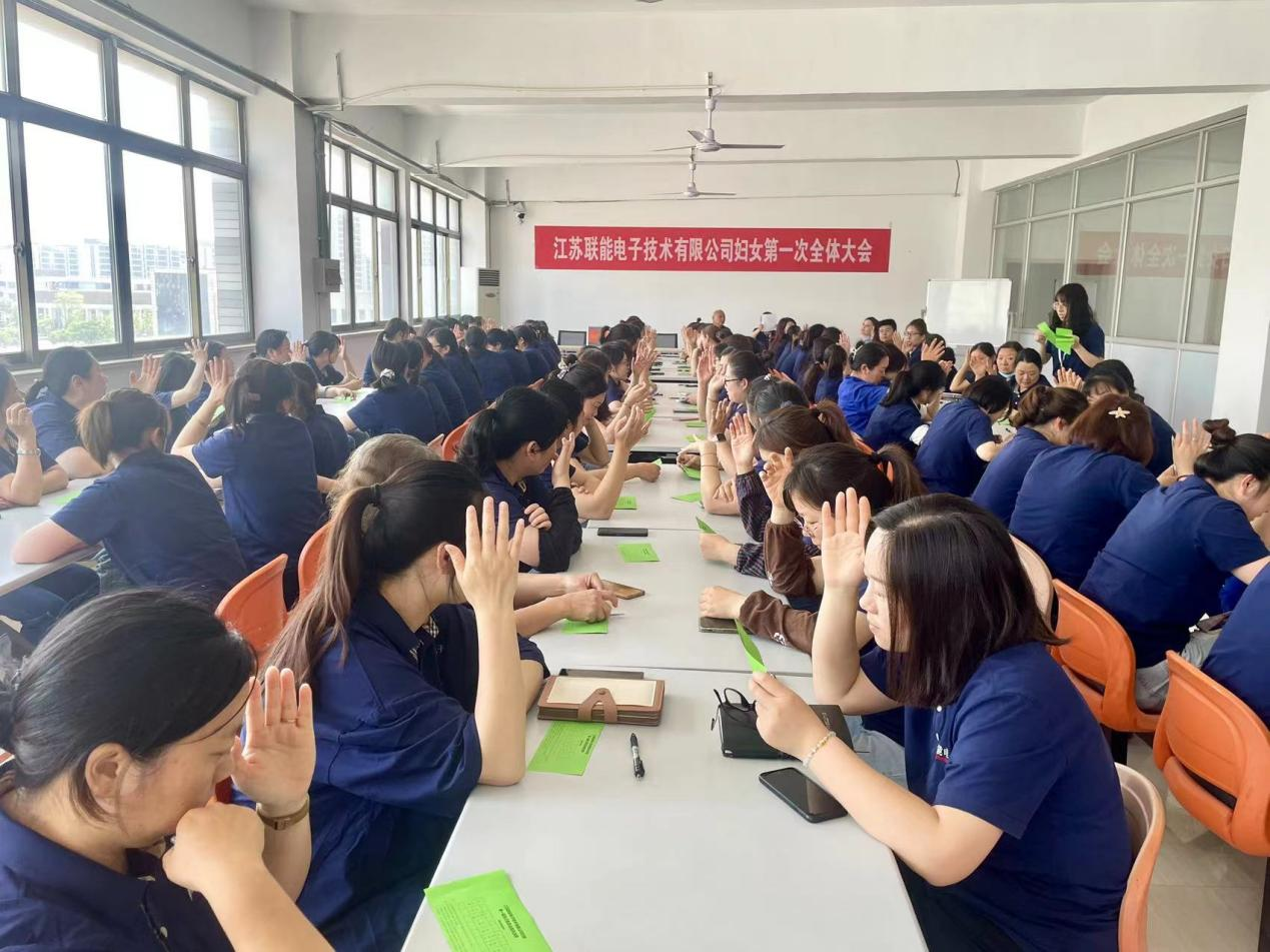 2024年5月23日下午,江蘇聯(lián)能電子技術(shù)有限公司召開第一次婦女全體大會,選舉產(chǎn)生婦女聯(lián)合會第一屆執(zhí)行委員會主席、副主席及委員。揚(yáng)州城北街道婦聯(lián)主席竇雪出席會議,聯(lián)能電子98名女性職工到場參加了大會。