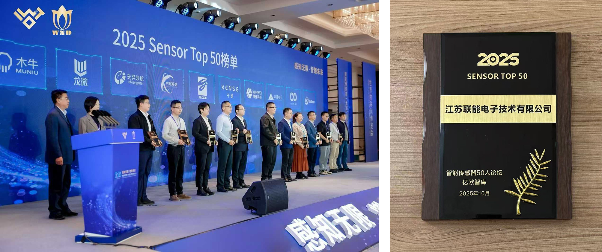 展會期間,另一重磅喜訊傳來——江蘇聯(lián)能電子技術(shù)有限公司憑借在傳感器領(lǐng)域的突出貢獻、強大的技術(shù)研發(fā)實力和優(yōu)異的市場表現(xiàn),成功榮登“2025 sensor TOP50榜單”!這一榮譽是行業(yè)對公司綜合實力的高度認可,更是聯(lián)能電子持續(xù)深耕傳感器領(lǐng)域的有力見證。