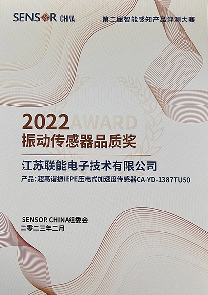 2022 第二屆智能感知產(chǎn)品評測大賽,江蘇聯(lián)能電子技術(shù)有限公司榮獲“2022振動傳感器品質(zhì)獎”和“2022最受期待企業(yè)獎”。
